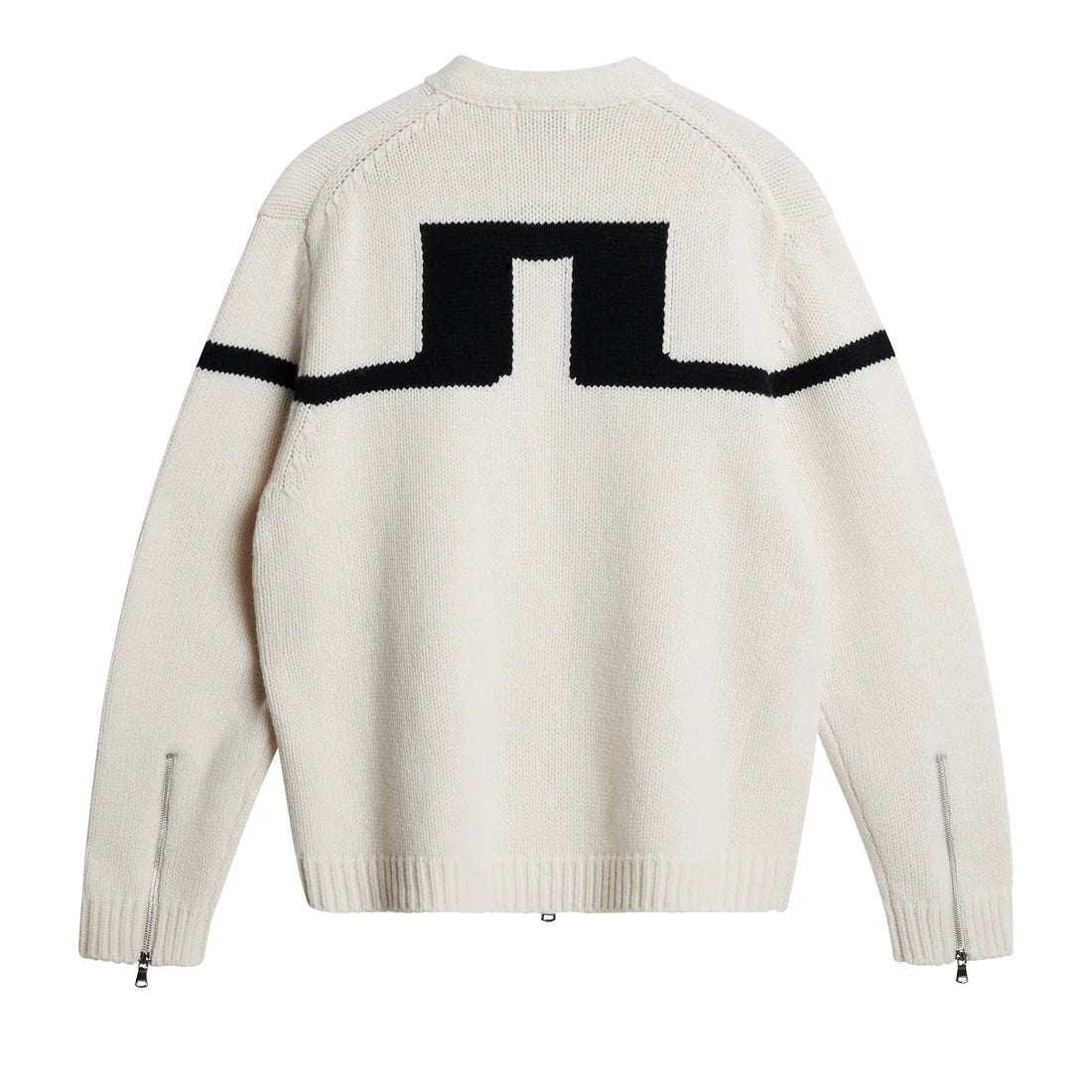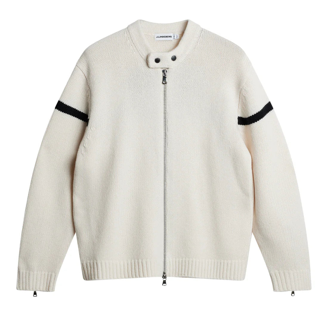 Magiskt stickat plagg från J.Lindeberg med mycket edge. Kessler Biker Zip Knit är tillverkad i tung ull med grov struktur, ärmdetaljer med dragkedja och en Bridge-logga i intarsia längs ryggen. Tvåvägsdragkedja för mångsidig styling.