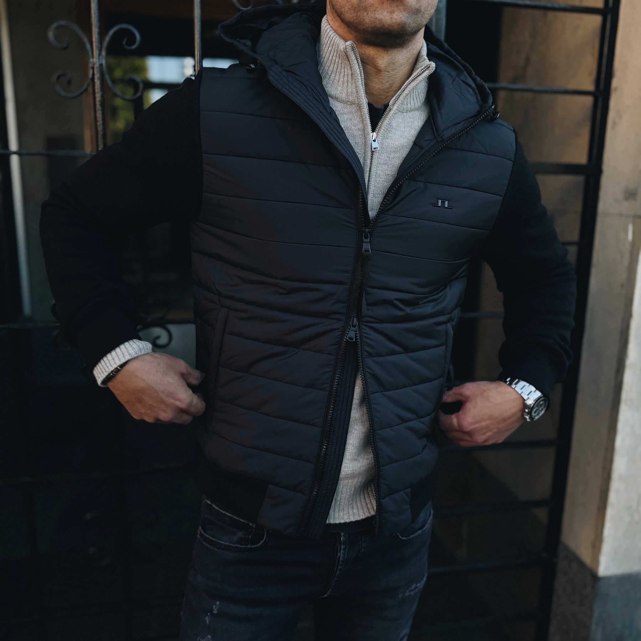 Hybridjacka från J.Lindbeberg. Techwear med en klassisk twist. Jackan fulländas av en logotyppatch i metall, justerbar huva och tvåvägsdragkedja som passar från staden till backarna.