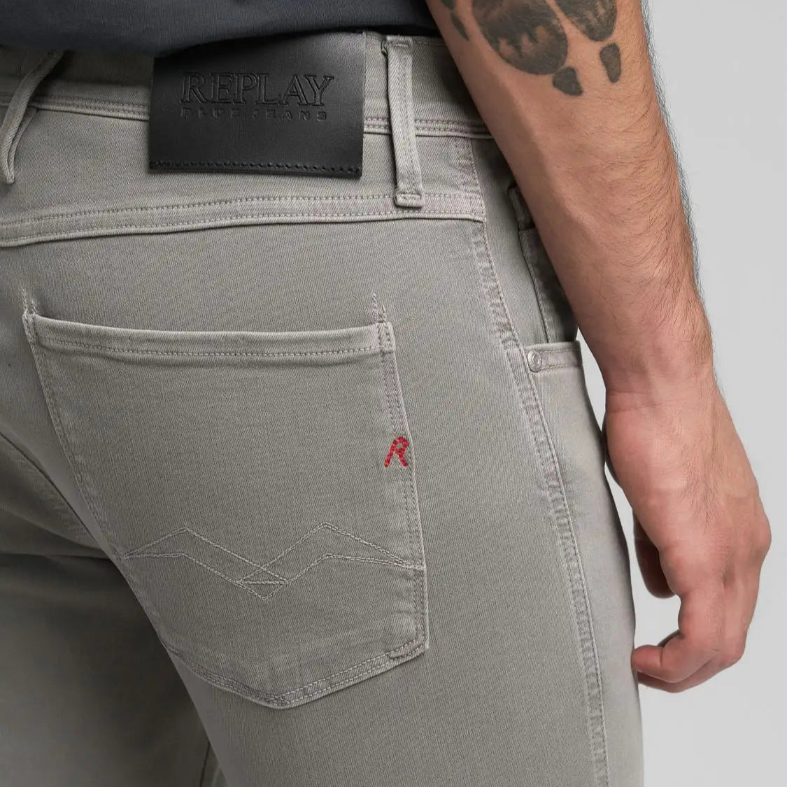 Slim fit-jeans i den mycket omtyckta passformen Anbass från Replay. En av våra bäst sålda passformar. Replay Hyperflex Color edition får en härlig känsla av precis mellan jeans och chinos, med sin unika komfort och tvättade look blir det här en favorit bland våra jeans. Modellen bär byxan i sin vanliga storlek.