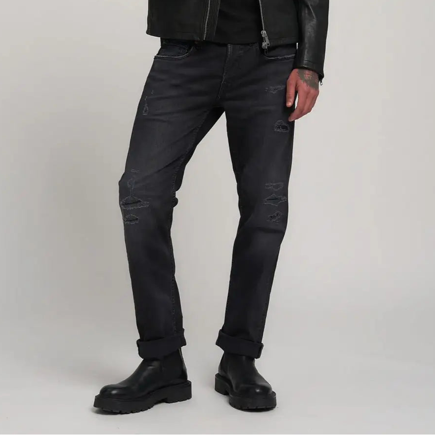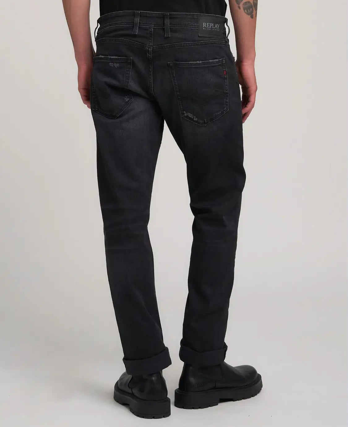 Ny tvätt ifrån Replay i populära passformen Grover. Regular Slim fit-jeans i den mycket omtyckta kvalitén 573 i en svartgrå trasig & lagad tvätt. Passformen Grover från Replay är ett perfekt val för dig som vill ha en lite ledigare passform utan att det blir för stort.