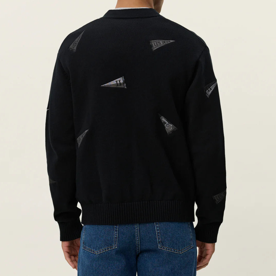 Stickad cardigan i bomull med broderade flaggor med Les Deux logotyp.