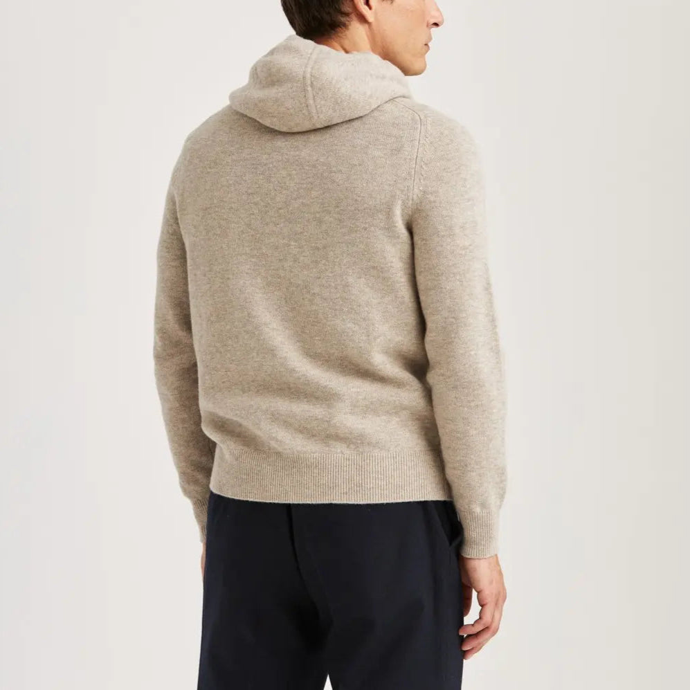Stickad hoodie från Morris i 100% merinoull